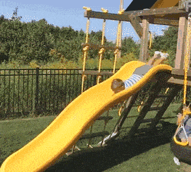 很多调皮的小朋友 , 只知道寻找玩耍的刺激 , 没有安全意识 , 玩滑梯的时候倒着来 。
