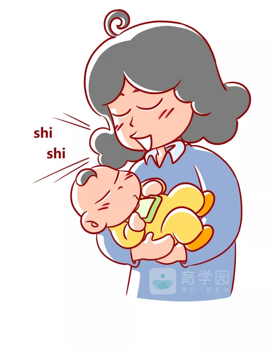 在孩子耳边发出“shi shi”声:这样会模拟婴儿在妈妈子宫里听到的声音 , 让孩子产生熟悉感并得到安慰 。