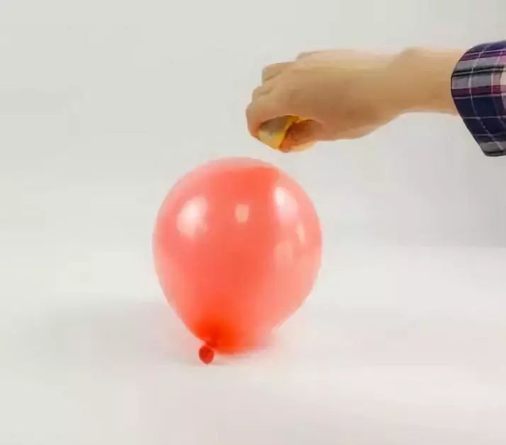 把柚子皮剁碎放入纯水中浸泡 , 再滴在气球上 , 还是没爆!